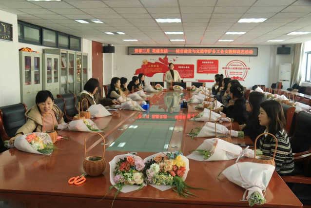 三月春風,百花盛開。為慶祝國際三八婦女節,豐富業余生活,城市建設與交通與交通學院于41棟305會議室舉辦“芳菲三月,花漾生活”花藝活動,學院全體女教師參加。
