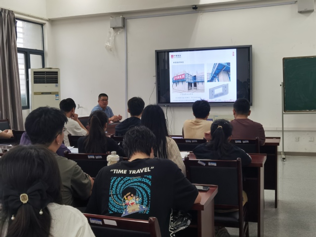 在講座中,王安民高工結合自身豐富的實踐經驗,向同學們深入淺出地講解了裝配式建筑的生產和施工技術。他通過具體工程案例,詳細闡述了裝配式建筑在實際工程中的應用,以及施工現場可能遇到的難點和解決方案。他還特別以在建的合肥經開區山姆會員店項目為例,講解了建筑工程的施工流程和現場施工策劃,使同學們對建筑施工全過程有了更加直觀的認識。王安民高工也鼓勵同學們“珍惜學習時光,努力成為優秀的人”,他的話語深深激勵了每一位同學。