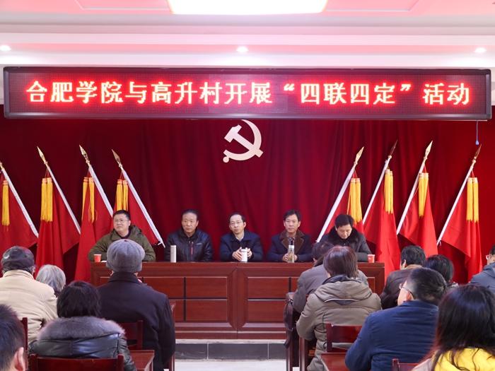 為深入貫徹落實合肥市委“四聯(lián)四定”工作精神,持續(xù)推進學(xué)校黨組織服務(wù)地方工作,1月10日,在合肥學(xué)院黨委委員、紀委書記洪家友和關(guān)工委常務(wù)副主任鄭永紅的帶領(lǐng)下,合肥學(xué)院組織部、關(guān)工委、團委和國資處一行赴肥西縣高店鄉(xiāng)高升村開展“四聯(lián)四定”工作。根據(jù)中共合肥市委合組發(fā)【2018】5號文件精神要求,高升村是合肥學(xué)院“四聯(lián)四定”工作聯(lián)系點。
