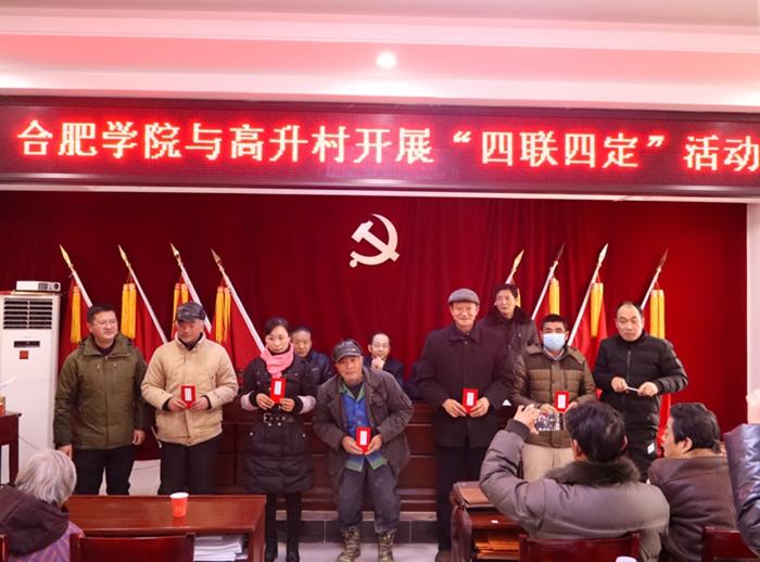接著,合肥學(xué)院組織部副部長丁增云表示,此次前來不僅是貫徹落實好合肥市委的“四聯(lián)四定”工作任務(wù),更是帶來合肥學(xué)院對大家的關(guān)心、慰問與服務(wù)。同時希望各位父老鄉(xiāng)親發(fā)揚艱苦奮斗的精神,早日脫貧奔小康,也預(yù)祝大家新春愉快。之后,舉行了捐贈高升村黨員活動室信息化設(shè)備儀式,雙方簽訂協(xié)議書。學(xué)校向高升村貧困戶發(fā)放慰問金和食用油。