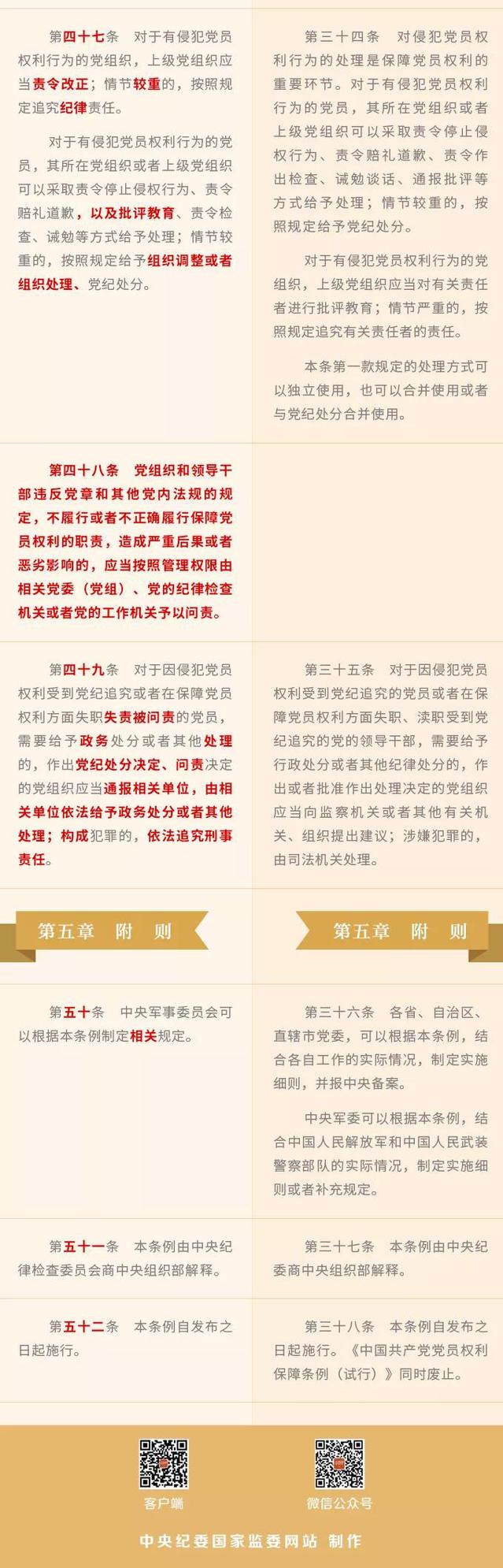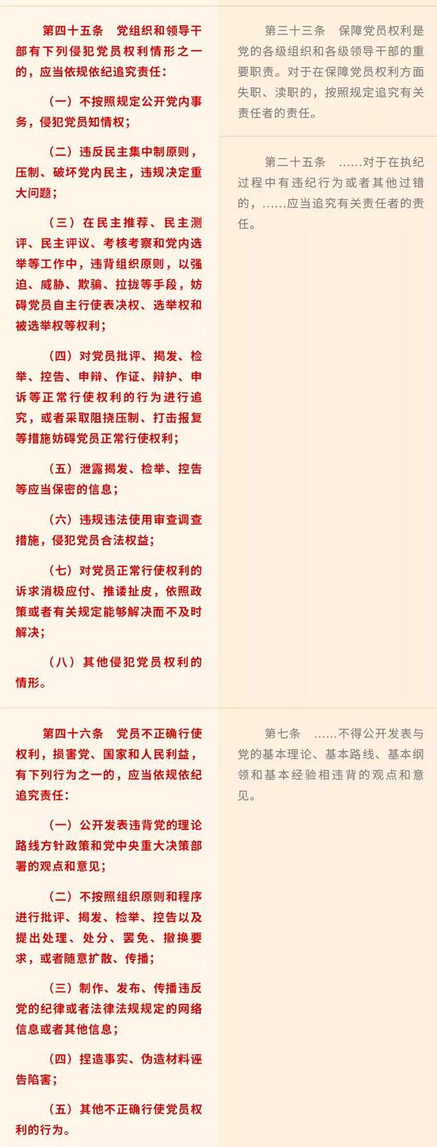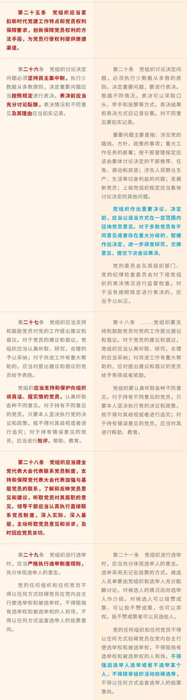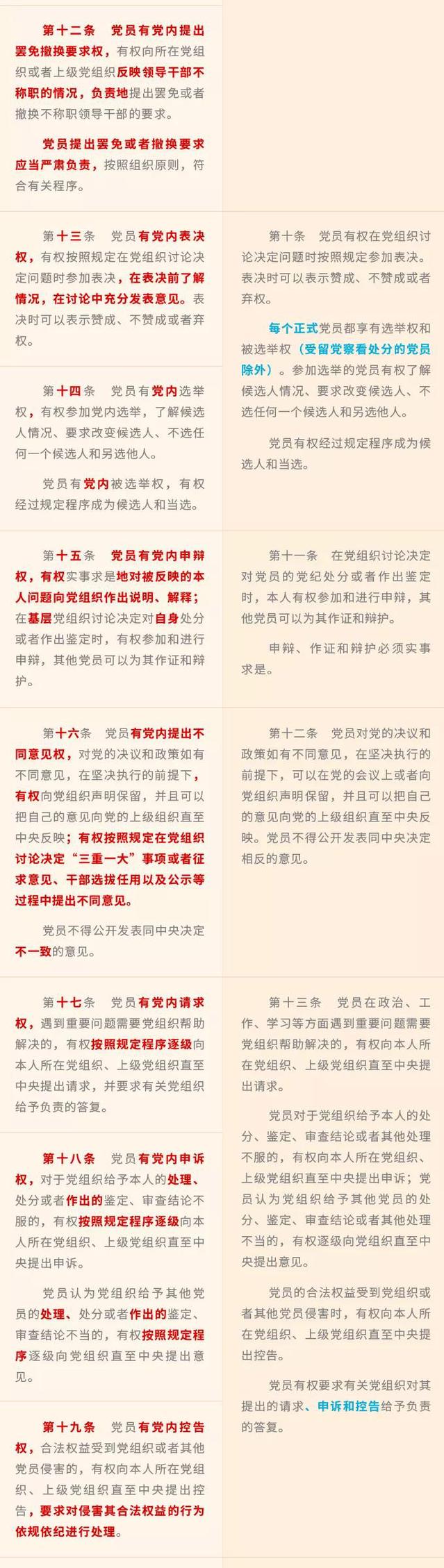 《中國共產黨黨員權利保障條例》修訂前后對照表