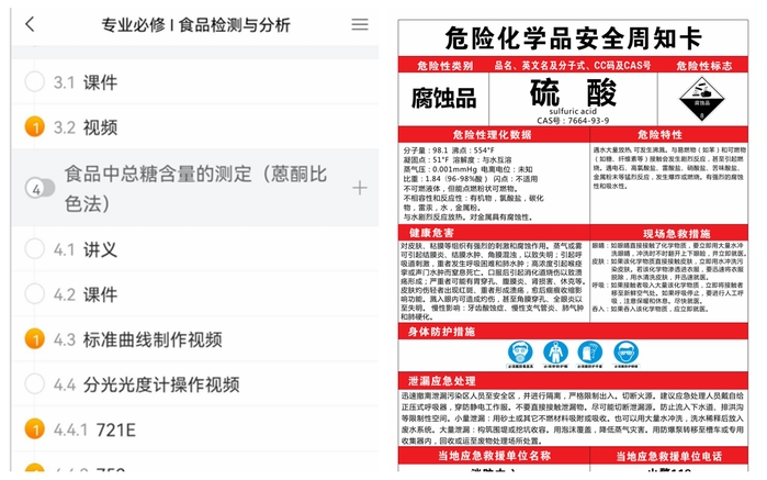 無獨有偶,生物食品與環境學院的李賡老師這學期教授的課程是《食品檢測與分析實驗》,課程中的實驗涉及腐蝕性試劑的使用,具有一定的危險性,線上教學期間,李老師巧妙調整課程內容,將實驗安全等內容搬進了線上課堂。通過“學習通”發放安全周知卡并上傳儀器操作視頻,李老師讓學生在課前預習及了解實驗所使用的試劑的相關情況以及實驗的正規操作和防護方法,幫助學生牢固樹立實驗安全意識。為提高學生的學習效率,李老師利用“學習通”在課程章節中建立任務點,要求學生按時完成,同時及時發布測試題檢測學生的學習情況。“作為專業基礎技能操作課程,也是學生進入實驗室和進行實驗操作的‘第一堂課’,這一課程對同學們的實驗安全意識和操作嚴謹性有著很大的影響。”跨越時空,李老師在“云課堂”上為學生扣好了實驗安全“第一粒扣子”。