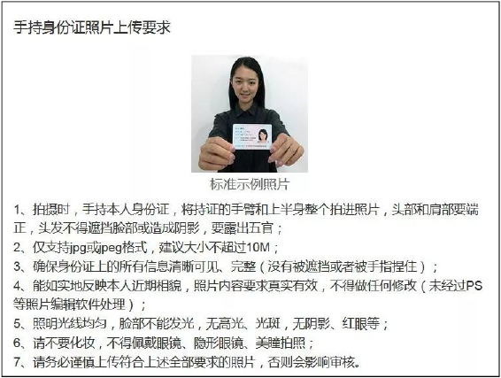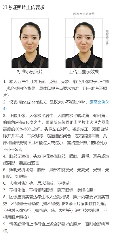 說明:如遇到身份證核驗未通過,考生必須提供身份證照片補充材料(有效居民身份證人像面、身份證國徽面;照片要求身份證邊框完整,字跡清晰可見,亮度均勻);如遇到報名時證件類型非居民身份證的,考生必須提供本人有效證件。