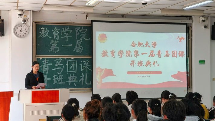 為加強青年學生的思想政治教育,培養一批有理想、有道德、有文化、有紀律的社會主義建設者和接班人,10月30日中午12點15分,合肥大學教育學院第一屆青馬團課開班典禮和第一次授課在一期3棟101教室拉開帷幕。出席典禮的有學院團委副書記張弦樂,團委學生兼職副書記朱思宇、周琴,主席團成員周友夢蝶、楊子涵、蘇雯和各部門委員以及各班班長、宣傳委員、思政委員和組織委員。組織部部長徐錦瑤主持此次開班典禮。 典禮伊始,主持人介紹青馬團課的相關事項和重要意義,鼓勵學員們珍惜這次學習機會,努力提升自己的思想政治素質和綜合能力。隨后,全體青馬團課學員齊唱共青團團歌。緊接著,主持人介紹了青馬團課的課程規則,對大家的青馬團課日常學習作出了一定要求。其中,團委副書記張弦樂提出,青馬團課是培養青年馬克思主義者的重要陣地,希望學員們通過團課的學習,堅定理想信念,增強責任感和使命感,將共青團精神發揚光大。同時作為合肥大學學習宣傳貫徹黨的二十屆三中全會宣講團成員,張老師圍繞黨的二十屆三中全會概況與意義并結合學生會工作做了具體講解。