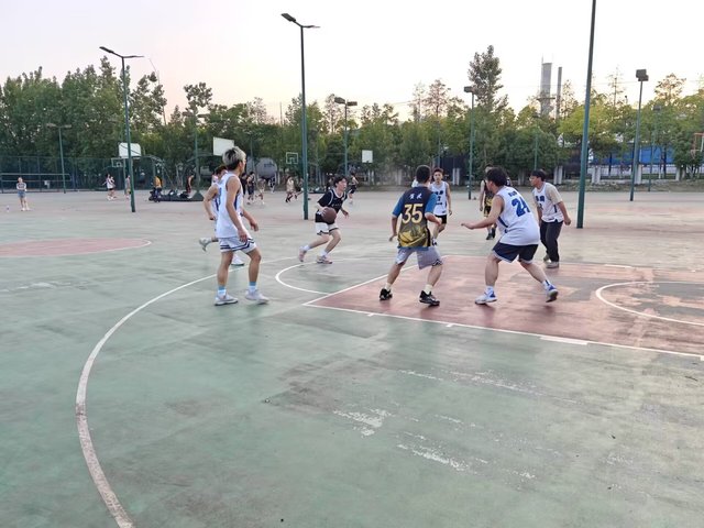 在比賽之前,隊員們提前進行熱身,活動筋骨,積極進行比賽前的各項熱身活動。比賽正式開始前,大家聚在一起大喊加油,以鼓舞教育男籃士氣。順著裁判一聲哨響,比賽正式開始。我方隊員順利搶到球權,并且轉化為得分,替補席一陣歡呼。隨后兩隊展開了激烈的競爭,我方隊員拼命地爭搶每一個球權,不知疲倦地奔跑,進行進攻與防守。與此同時,替補席為球員們加油打氣,仿佛自己就在球場上拼搏。半場結束時,教育男籃暫時落后,但是我們并未因此放棄,在下半場發起了激烈的反攻。搶斷、反擊、傳球、投籃,憑借著嫻熟的團隊合作,教育逐漸追上比分,并且反超。但是最后時刻,主力球員體力逐漸不支和配合上的失誤,被對手反超比分。即使最后時刻我方隊長投進一記三分,還是以微弱的劣勢惜敗。