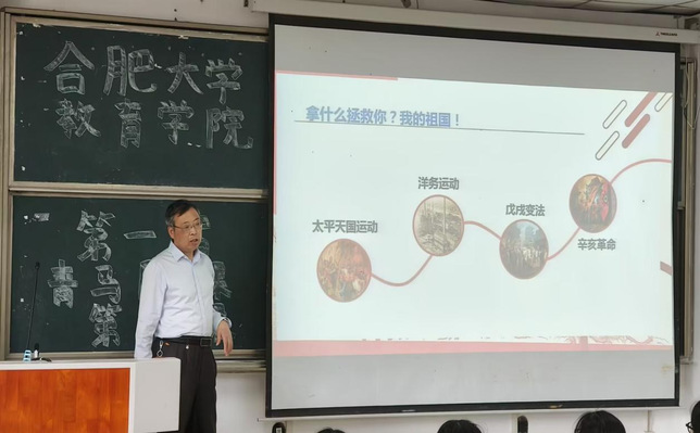 2025年4月30日,合肥大學(xué)教育學(xué)院第一屆青馬團(tuán)課第六課在3棟301教室順利開講。本次團(tuán)課邀請合肥大學(xué)“五老”專家團(tuán)成員、原馬克思主義學(xué)院副教授姜從山授課。姜從山以“中國共產(chǎn)黨百年輝煌”為主題,帶領(lǐng)同學(xué)們回顧了黨的百年歷史,激勵(lì)團(tuán)員青年在“回看走過的路”中,堅(jiān)定信仰信念、增強(qiáng)自信自覺;在“遠(yuǎn)眺前行的路”中,敢于擔(dān)當(dāng)擔(dān)責(zé),不斷開拓創(chuàng)新。