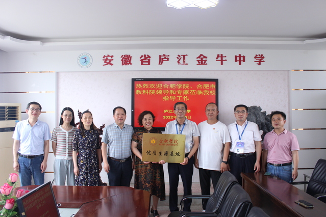 69日,教育學院院長江芳、副院長衛萍、副書記王迅、黨政辦主任杜啟明以及魏曉媛博士一行前往廬江中學、廬江金牛中學開展優質生源基地簽約授牌及招生宣傳活動。