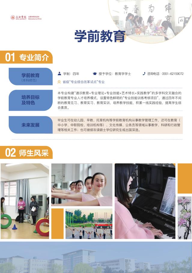 學前教育(本科 師范)               咨詢電話:0551-62159072