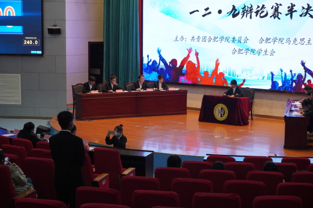 為了豐富學生課余生活,增強學生邏輯思維和語言表達能力,提高學生的辯論水平,由校團委主辦的合肥學院第二十屆一二·九辯論賽半決賽于11月29日晚7:30在圖書館報告廳A舉行。擔任此次比賽的評委有馬克思主義學院李繼友老師、黃瑩瑩老師、魏亞老師。