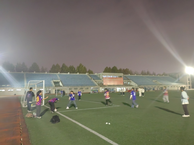 1126日晚19時教育學院女足一隊于二期操場和經濟與管理學院女足隊進行了女足新生杯比賽。