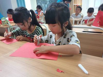 “一剪之巧奪神功,美在民間永不朽。”剪紙藝術(shù)歷史悠久,是我國優(yōu)秀的文化瑰寶。在各種非遺文化中,志愿者專門選擇了“剪紙”作為本節(jié)課的主題。課堂上,志愿者帶來的剪紙作品讓孩子們發(fā)出陣陣呼聲,在志愿者強(qiáng)調(diào)了需要注意的安全注意事項(xiàng)后,孩子們都迫不及待地想開啟自己的剪紙之旅。孩子們拿起剪紙工具,從簡單的折疊開始,一步步地將紅色卡紙折疊、描畫、裁剪,在“咔咔”聲中體驗(yàn)剪紙藝術(shù)的獨(dú)特魅力與神秘奇巧。
