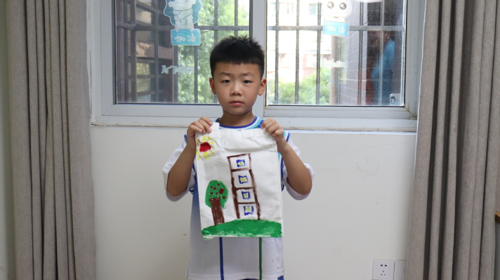 無論是“籬落疏疏一徑深,樹頭新綠未成陰”的小小村落,還是華燈初上、車水馬龍的繁華都市;無論是山環(huán)水繞的紅磚青瓦,還是拔地而起的玉樹瓊樓,只要是家鄉(xiāng)總是令人如癡如醉,魂牽夢縈。為豐富社區(qū)青少年的假期文化生活,幫助他們更加了解家鄉(xiāng)的環(huán)境,感受家鄉(xiāng)的變化,7月8日,合肥學院教育學院“七彩童年,‘育’你相伴”志愿團隊來到濱湖和園社區(qū),志愿者王欣悅和尹冰清為孩子們帶來了“繪出我的美麗家鄉(xiāng)”公益美術課堂,讓孩子們用五彩的顏料在帆布包上繪出心中的家鄉(xiāng)。 家鄉(xiāng)的模樣是愛意在腦海中一筆一墨的勾勒,是回憶在腦海中一點一滴的匯聚。志愿者王欣悅告訴孩子們,家鄉(xiāng)是難忘的風景,是念念不忘的美食,是獨特的舞蹈與服飾,也是在勞動人民的汗水下鑄造的精美絕倫的建筑。隨著志愿者話音落下,孩子們稚氣的眼睛充溢星光,好像盛滿了家鄉(xiāng)的模樣,緊接著孩子們便興高采烈地分享自己的故鄉(xiāng)。