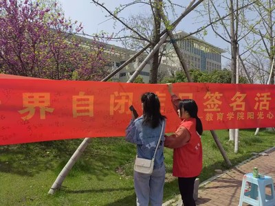 為了讓更多的人群認識、了解、接納、支持和幫助自閉癥群體,4月1日至4,教育學院陽光心理志愿服務隊在一期校園開展國際自閉癥日橫幅簽名活動。