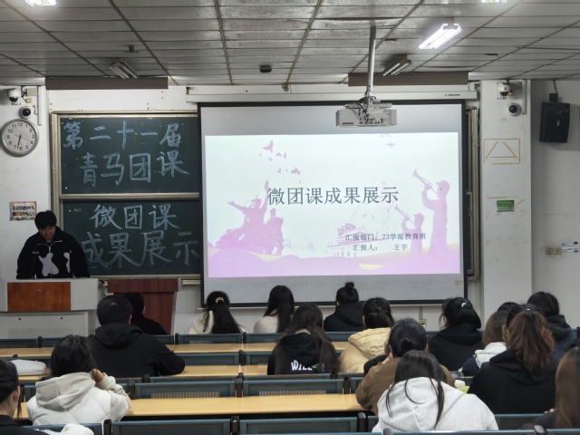 11月13日晚6:30分教育學院3棟101教室舉辦了第二十一屆青馬團課的微團課展示本次活動由組織部委員徐錦瑤主持,評委由主席團成員周天藝芮鷺潔,團委學生兼職副書記屠厚輝、李艾錦擔任,各學員以班級或部門為單位參加,各小組的12名代表學員分別上臺展示并交流,用百年奮斗歷程,筑牢青年思想根基。