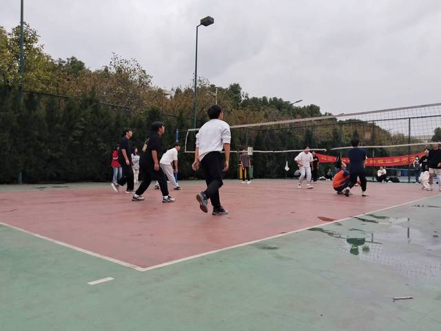 立冬過后,天氣寒涼,卻不及現場雙方運動員和到場觀眾高漲的熱情,隊員們做著熱身運動,觀眾也不斷為自己喜歡的隊伍加油打氣。第一局比賽開始,教育學院的運動員們連續擊球得分,士氣大增,取得比分優勢。語言文化與傳媒學院面對猛烈的進攻陷入被動,隊內更換戰略快速作出防守,一連扳回幾分,但比分差距過大,最終教育學院以25:6的比分贏得第一局比賽。