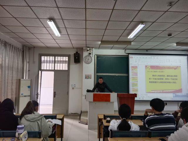 為進(jìn)一步做好入黨積極分子培養(yǎng)工作,提高積極分子思想覺(jué)悟和政治理論水平,進(jìn)一步端正入黨動(dòng)機(jī),加強(qiáng)黨性錘煉,11月22日12點(diǎn)30分,教育學(xué)院在3棟101開(kāi)展了入黨積極分子第二次黨課培訓(xùn)。本次黨課邀請(qǐng)學(xué)生處處長(zhǎng)丁增云老師主講,110名入黨積極分子參與培訓(xùn)。 丁增云老師以充分發(fā)揮先鋒模范作用為引,從入黨動(dòng)機(jī)和入黨程序、大學(xué)生先鋒模范作用的內(nèi)涵,大學(xué)生黨員發(fā)揮先鋒模范作用存在的問(wèn)題以及原因,發(fā)揮先鋒模范作用的主要途徑四個(gè)方面深入淺出地幫助積極分子提高對(duì)黨的認(rèn)識(shí)。要求同學(xué)們把思想落實(shí)到行動(dòng)上、落實(shí)到具體工作中,以更加積極主動(dòng)的姿態(tài)向黨組織靠攏。 通過(guò)本次培訓(xùn)課程,不僅讓培訓(xùn)的同學(xué)對(duì)入黨有了更加深刻地認(rèn)識(shí),形成正確的入黨動(dòng)機(jī),也為以后如何發(fā)揮大學(xué)生黨員先鋒模范作用提供了可行的途徑。相信經(jīng)過(guò)本次課程的培訓(xùn),入黨積極分子將更加積極的向黨組織靠攏,會(huì)更加努力的提高自己的思想境界。(撰稿:張雪云 曾婉玉,審稿:王多慈) |