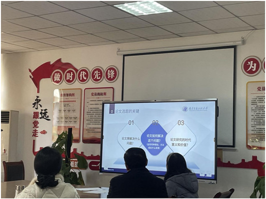 為扎實推進我院科研與研究生工作,進一步增強學術氛圍,弘揚學術精神,提升我院碩士研究生學術水平和寫作能力。1月15日下午2點30分,南京信息工程大學高等教育研究所所長、高等教育學博士生導師吳立保教授應邀來南艷湖校區一期三號樓206會議室,為我院師生作了題為“教育專業碩士學位論文選題與寫作規范”的學術報告。報告會由副院長劉紅主持,研究生導師、部分青年教師和23級全體碩士聆聽了此次報告會。 吳立保教授首先從“如何撰寫高質量的碩士畢業論文”這個問題入手,講述了要想提高論文質量,需要我們深入探究論文的選題、開題和寫作規范。“論文選題的關鍵”需要重點考慮三點:論文想解決什么問題、論文如何解決這個問題、論文研究的時代意義和價值。然后吳立保教授講述了寫好一篇框架完整的開題報告,應包括研究背景與意義、國內外文獻綜述、研究思路與研究框架、研究方法、研究重難點、參考文獻六個方面。吳教授還給出了論文寫作的基本范式:思辨性研究論文、定量研究論文、質性研究論文、混合研究論文,并進行詳細講解。最后,吳教授還就論文寫作中的細節問題給出了建議,論文主標題要簡潔明了,章節標題和主標題之間要形成一個整體,注意參考文獻格式。 在互動交流環節,吳立保教授耐心解答了師生們的問題,讓在場師生對論文選題和論文規范有了更深層次的認識。 吳立保教授的講座兼顧了論文選題、開題和學術規范內容,具有很強的指導性。此次講座幫助同學們打開了視野,開拓了學術思維。與會人員收獲頗豐,希望再次聆聽吳教授的講座。(撰稿:張可瀅,審核:謝兆樹) |