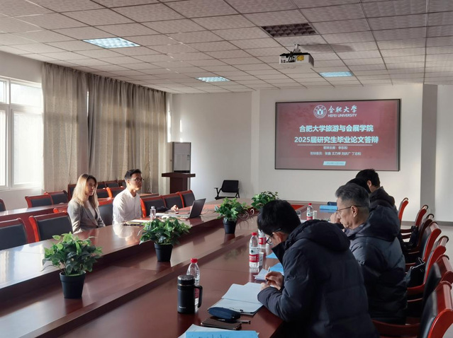 2024年12月20日,合肥大學(xué)旅游與會(huì)展學(xué)院旅游管理碩士畢業(yè)論文答辯在一期2號(hào)樓學(xué)院會(huì)議室隆重舉行。學(xué)院邀請(qǐng)到了來自安徽大學(xué)的李東和教授、合肥工業(yè)大學(xué)的張?chǎng)?/span>副教授、安徽省中國(guó)旅行社的丁志和總經(jīng)理以及我院的碩士研究生導(dǎo)師王乃舉和劉慶廣兩位教授共同擔(dān)任答辯評(píng)委。參加本次答辯的研究生分別是來自烏克蘭和柬埔寨的留學(xué)生,2024級(jí)的多位研究生新生也到場(chǎng)觀摩。