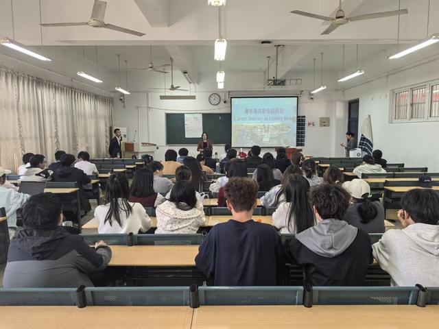 為進一步深化校企合作,提升酒店管理專業學生的職業認知與實踐能力,3月25日,旅游與會展學院特邀三亞亞龍灣瑞吉酒店人力資源團隊走進課堂,為酒店管理專業全體學生帶來了一場別開生面的職業分享與交流活動。