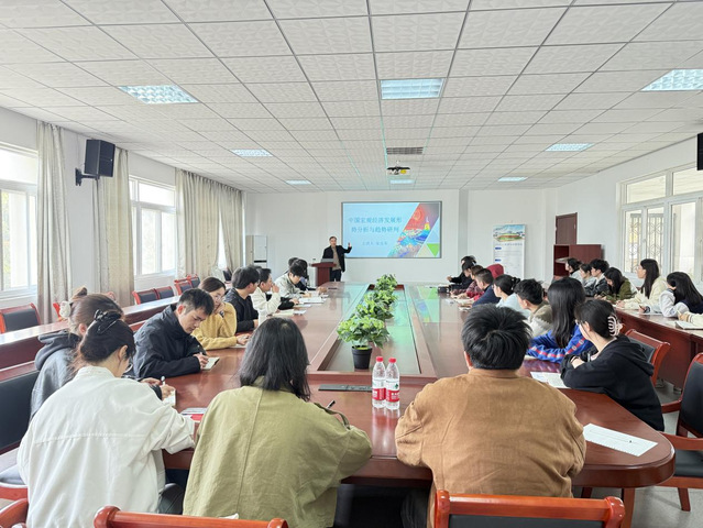 為深入學(xué)習(xí)習(xí)近平新時代中國特色社會主義思想,全面貫徹落實黨的二十大和二十屆二中、三中全會精神,準(zhǔn)確把握當(dāng)前經(jīng)濟(jì)形勢,提升黨員師生服務(wù)國家戰(zhàn)略的使命擔(dān)當(dāng),4月2日下午,旅游與會展學(xué)院院長宋玉軍以“中國宏觀經(jīng)濟(jì)發(fā)展形勢分析與趨勢研判”為題,為全院學(xué)生黨員講授專題黨課。