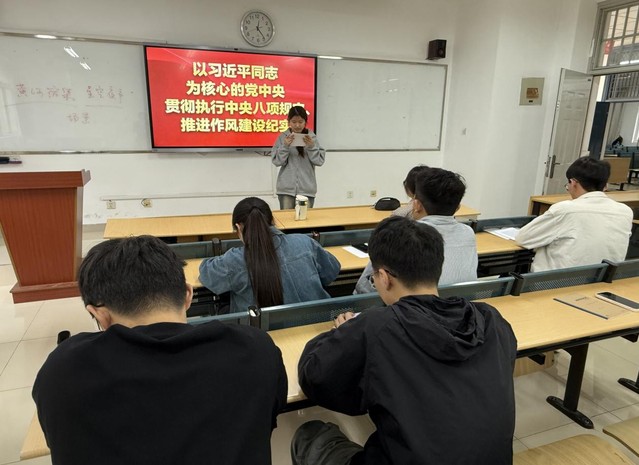 5月9日,旅游與會展學院學生第二黨支部于博學樓A座104教室舉辦深入貫徹中央八項規定精神學習教育專題讀書分享會。活動由歐陽雯鳳同志主持,支部黨員與積極分子踴躍參與,聚焦中央八項規定精神及其實施細則,深刻感悟新時代加強黨的作風建設的重大意義