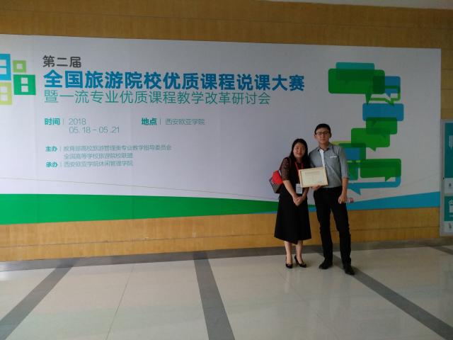 2018年5月19日,由教育部高校旅游管理類專業教學指導委員會、全國高等學校旅游院校聯盟主辦,西安歐亞學院休閑管理學院承辦的第二屆全國旅游院校優質課程說課大賽順利舉辦。在此次大賽中我系教師發揮優異,姜陽老師榮獲旅游管理組三等獎、陳蘋蘋老師榮獲酒店管理組優秀獎。