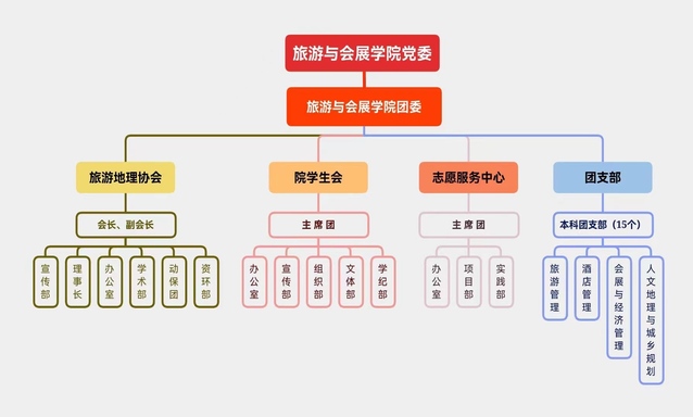 按照根據(jù)《關(guān)于推動高校學(xué)生會(研究生會)深化改革的若干意見》及《合肥學(xué)院學(xué)生會深化改革方案》,旅游與會展學(xué)院學(xué)生會于2021年11月完成學(xué)生會改革,組織架構(gòu)調(diào)整,現(xiàn)為“主席團+工作部門”模式,未在工作部門以上或以下設(shè)置“中心”、“項目辦公室”等常設(shè)層級。主席團下設(shè):辦公室、宣傳部、組織部、文體部、學(xué)紀部共五個部門,配有1名專職團委書記和1名兼職學(xué)生團委副書記。