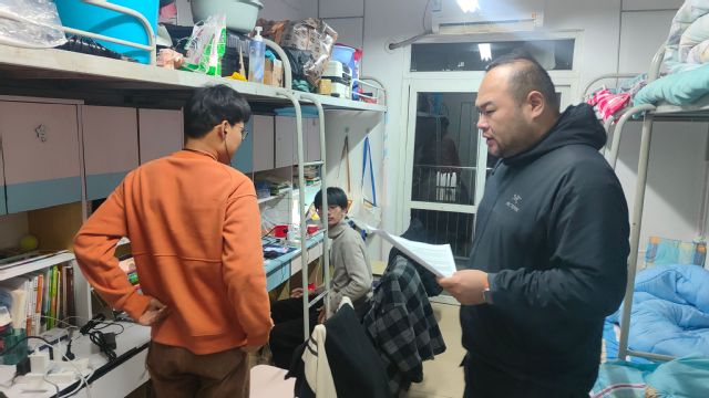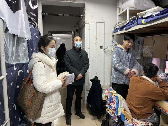 在走訪的過程中,學院領導與同學們親切交流,詢問學習以及生活上的困難,關心大家未來的計劃,認真回答同學們提出的問題并分享自己的經驗和建議。黃雄英在走訪時有針對性地檢查了電器使用情況,她以11月24日合肥一高校女生宿舍發生火災事件為例,特別強調了冬季宿舍消防安全的重要性。宋玉軍在走訪過程中指出寢室用電安全的問題,提醒大家注意防患于未然,把安全常記心中。鄭嬗婷強調了疫情防控的重要性,提醒同學們勤通風、勤洗手,疫情期間做好個人防護。
