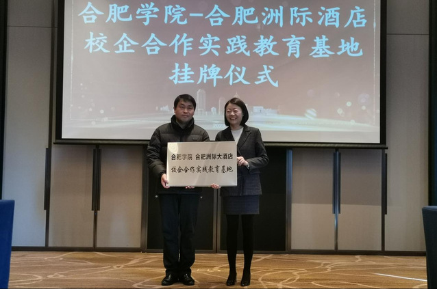 張應杰和陳婕代表校企雙方舉行了“合肥學院校企合作實踐教育基地”授牌儀式。陳丹介紹了校企合作實踐教育基地建設框架。張應杰對洲際酒店支持學院就業實習工作表示感謝,他表示對旅游行業和酒店行業的發展充滿信心,希望畢業生在企業中能夠堅持務實、奮進的態度,在行業中不斷成長。