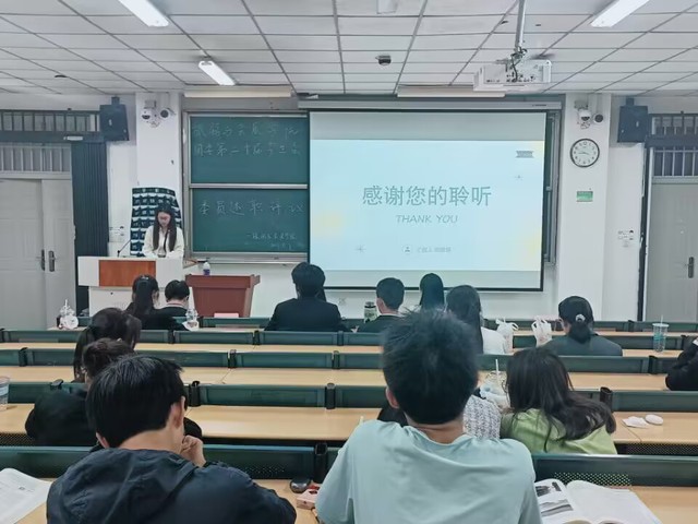 會議伊始,各部門的委員依次上臺,通過講解競選PPT來進行述職。委員們從部門建設、活動展示、工作不足、未來展望等幾個方面進行演講,具體指出過去一年里所做的工作,參與承辦的活動以及取得的成果,認真總結工作中的問題并提出改進方法,進一步明確接下來的工作方向及目標。接著,由原部門負責人進行簡單的點評以及提問,委員們結合實際,事實求是的認真回答問題。最后,主席團成員查鈺青進行總結發(fā)言,她表達對各部門的工作表示肯定,對繼任的學生干部寄予厚望,希望新一屆學生干部接好接力棒,扎扎實實地開展工作,將我院學生會建設得更好。