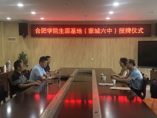 2023年6月19日上午,我院與蒙城第六中學舉行了優質生源基地簽約及授牌儀式。宋玉軍院長、鄭嬗婷副院長、實驗實訓中心主任胡遲一行前往蒙城第六中學,受到了蒙城第六中學校長傅衛剛一行熱情地接待。