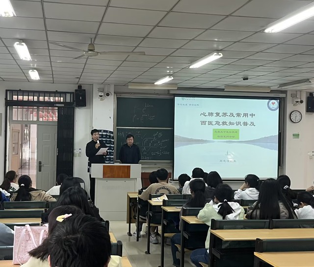 高志凌醫(yī)師以心肺復(fù)蘇及常用中西醫(yī)急救知識(shí)普及為主題從簡(jiǎn)易止血術(shù)、燙傷、現(xiàn)代心肺復(fù)蘇術(shù)、海姆立克急救法、保健穴位五個(gè)方面向大家講述常用醫(yī)療知識(shí)首先,他將觸電、溺水、摔傷出血、燙傷等突發(fā)性情況與課件結(jié)合學(xué)生們介紹簡(jiǎn)易的止血術(shù),讓大家對(duì)急救知識(shí)有了一個(gè)基本的認(rèn)識(shí)。接著,高醫(yī)師圍繞心肺復(fù)蘇、海姆立克等內(nèi)容進(jìn)行詳細(xì)講解,介紹應(yīng)急救護(hù)的基本概念以及掌握應(yīng)急救護(hù)知識(shí)技能對(duì)于贏取救治時(shí)間、挽救生命的關(guān)鍵性作用,重點(diǎn)強(qiáng)調(diào)在各種原因?qū)е?/span>的心搏驟停,必須在在4~6分鐘內(nèi)采取的急救措施。緊接著,他結(jié)合生活實(shí)際,生動(dòng)形象地講述神門穴、內(nèi)關(guān)穴等神奇的穴位的功用。