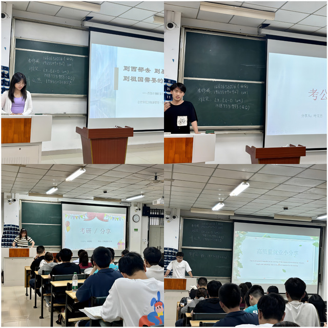 會(huì)議伊始,李修梅學(xué)姐進(jìn)行了考研相關(guān)經(jīng)驗(yàn)的分享,就高效的考研學(xué)習(xí)方法、合理安排時(shí)間等話題進(jìn)行了深入的交流;葉文杰學(xué)長分享了選調(diào)生的基本情況,介紹了自身備考的經(jīng)歷和一些政策要求、注意事項(xiàng)等;聊心怡學(xué)姐介紹了西部計(jì)劃的政策和面試流程,鼓勵(lì)大家到基層去,到祖國最需要的地方去,實(shí)現(xiàn)自己的價(jià)值;最后,吳梓興學(xué)長介紹了求職招聘過程中積累下來的經(jīng)驗(yàn)和信息,分享了高質(zhì)量就業(yè)的前期實(shí)習(xí)準(zhǔn)備與簡歷的制作要點(diǎn)。