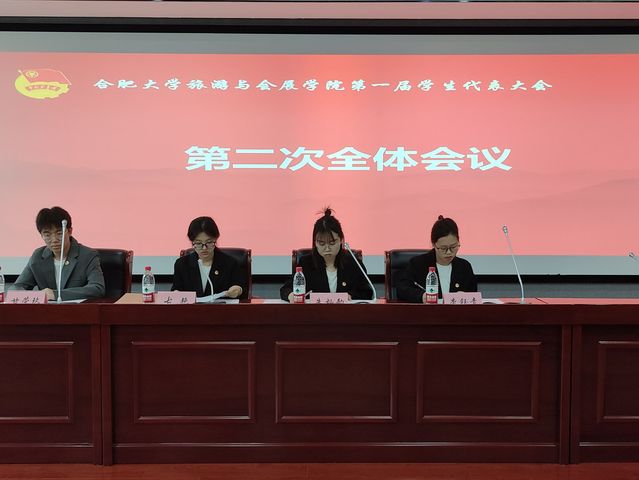 合肥大學旅游與會展學院第一屆學生代表大會第二次全體會議于6月14日在一區(qū)博學樓C座報告廳順利舉行。大會由旅游與會展學院學生會第二十屆主席團成員古艷主持。