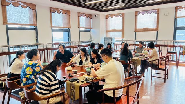 茶會期間,合肥大學茶文化協會的老師們一起交流了烏龍茶的起源、制作工藝及品鑒技巧,讓教職工們在享受茶香的同時,也增長了茶文化知識。茶友們或低頭細品,或交流心得,氣氛溫馨而熱烈。