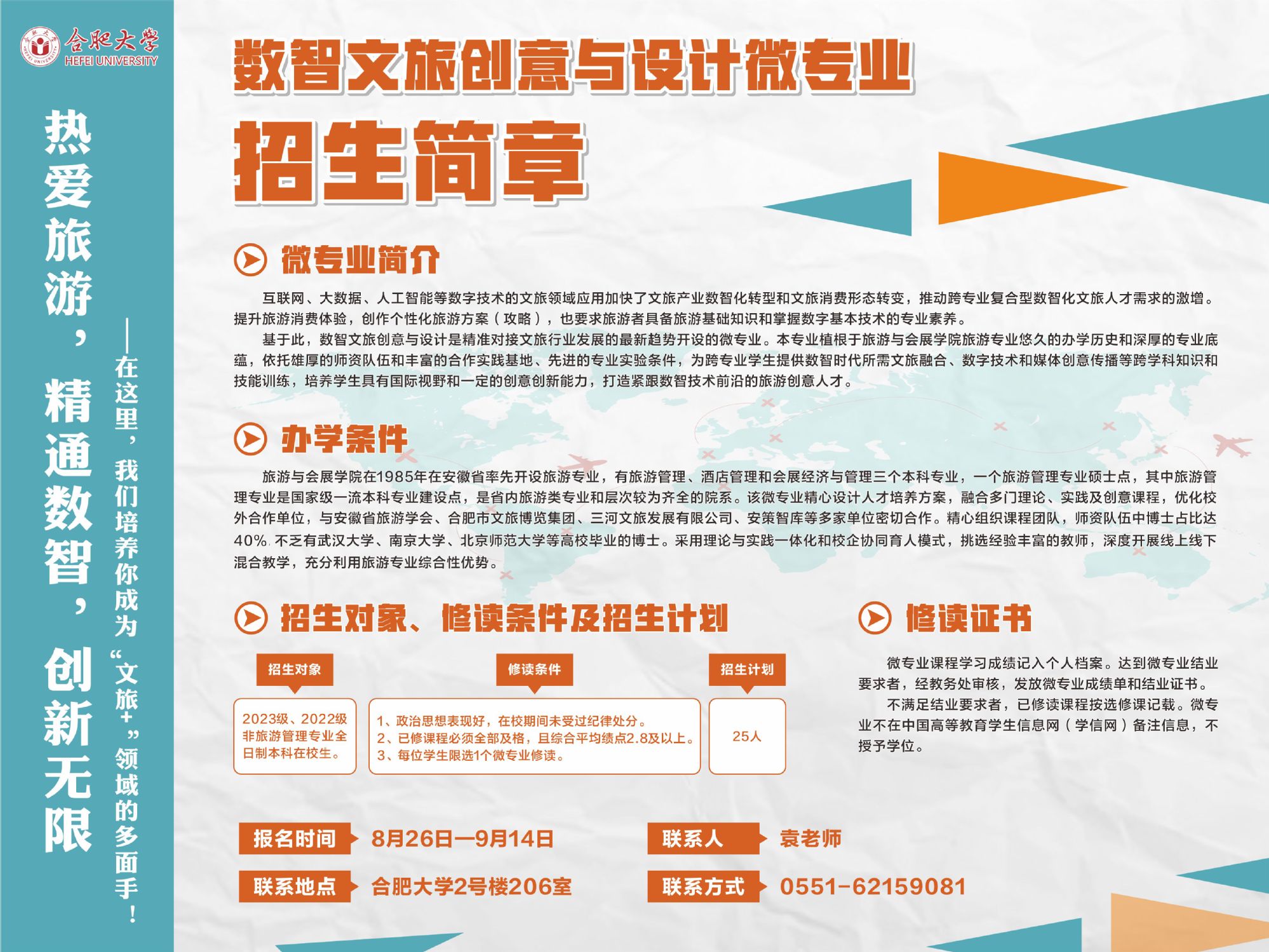 數智文旅創意與設計微專業面向全校大二、大三年級的非旅游管理專業全日制本科在校生招生。