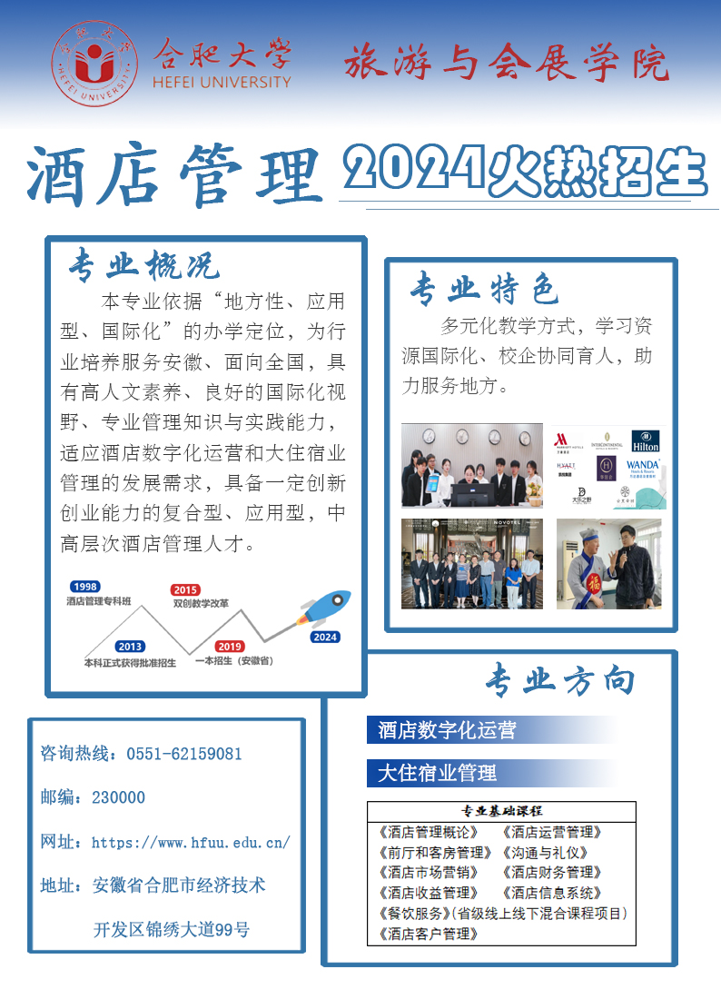 酒店管理(本科)         咨詢電話:0551-62159081     招生海報:酒店管理專業.jpg