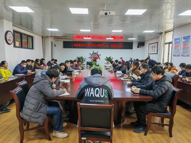 為了全面總結(jié)審核評估工作,有序推進(jìn)期末各項(xiàng)事宜,生物食品與環(huán)境學(xué)院于1224日在學(xué)院三樓會(huì)議室召開了2024年秋季學(xué)期的第五次全體教職工大會(huì),學(xué)院黨政領(lǐng)導(dǎo)班子及全體教師參會(huì)。會(huì)議由學(xué)院黨委書記李秀娟主持。