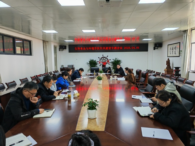 為縱深推進全面從嚴治黨,切實將作風建設融入學院發(fā)展全局,2025年4與1日,生物食品與環(huán)境學院召開作風建設工作專題會議,全體院領導、黨委委員、各支部書記參加會議,會議由學院黨委副書記晉松主持。