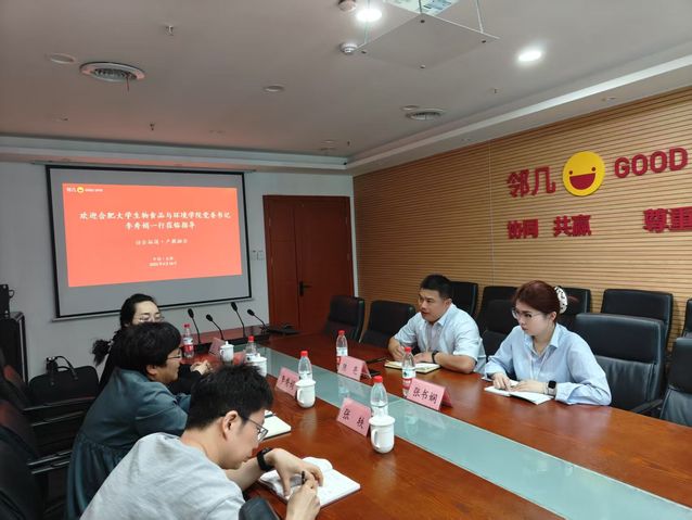隨后,陳部長邀請李書記一行來到鄰幾公司總部進(jìn)行座談,同時(shí)邀請了合肥大學(xué)23屆畢業(yè)生張書嫻參加座談會、與母校老師進(jìn)行交流。陳部長首先介紹了安徽鄰幾便利店公司的創(chuàng)立和發(fā)展情況,生物學(xué)院一行分別介紹了學(xué)院、專業(yè)和師資等情況。陳部長談到,鄰幾公司物流中心、烘焙生產(chǎn)線、快餐生產(chǎn)線等都將于近期投產(chǎn),門店也在快速擴(kuò)張中,亟需大量新鮮血液投入公司的快速發(fā)展建設(shè)中。陳部長還依次介紹了目前在職的十幾位合肥大學(xué)畢業(yè)生的工作情況,對合大校友的專業(yè)水平、綜合能力、敬業(yè)態(tài)度給予了高度評價(jià)。雙方就下一步可能開展的企業(yè)命題學(xué)科競賽、招聘用人等產(chǎn)學(xué)研工作進(jìn)行了充分溝通。