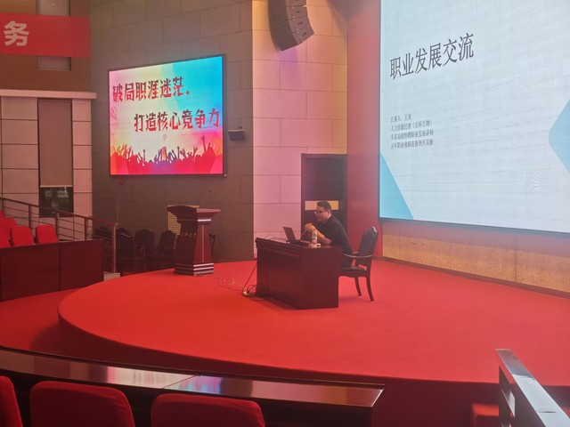 2025年5月13日晚6時30分,生物食品與環境學院“破局職涯迷茫,打造核心競爭力”主題講座于圖書館A報告廳舉行。活動由學院黨委副書記晉松、學生工作辦公室主任陳玲主持,特邀安徽安科生物工程(集團)股份有限公司人力資源經理王龍擔任主講,為全體大三學生及生物制藥專業新生帶來一場職業發展導航盛宴,現場反響熱烈。