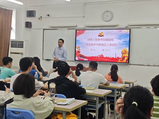 楊紅從黨性教育、黨性修養與黨性鍛煉的重要性切入,強調提升黨員能力素質的需要。通過講述先進黨員事跡,引導學生深刻理解黨的初心使命,讓學生明白黨性修養需要長期學習與實踐中培育和提升。楊紅著重強調,端正的入黨動機是入黨的首要條件。他指出,入黨不應出于功利目的,而是源于對共產主義事業的堅定信仰和為人民服務的熱忱,只有端正入黨動機,才能產生正確的爭取入黨的行動。正確的動機,是正確行動的推動力量。楊紅列舉了現實中部分學生因功利入黨導致的不良后果,讓學生明晰正確入黨動機的內涵。過硬的專業素養是入黨的必要條件,楊紅鼓勵學生努力學習科學文化知識,積極參與社會實踐,全面提升綜合素質。真抓實干、開拓進取是入黨的重要條件,他指出,黨在任何時候都要把群眾利益放在第一位,同群眾同甘共苦,保持最密切的聯系,不允許任何黨員脫離群眾,凌駕于群眾之上。黨員要時刻發揮先鋒模范作用,在日常生活中踐行黨的宗旨,以實際行動彰顯黨員先進性。