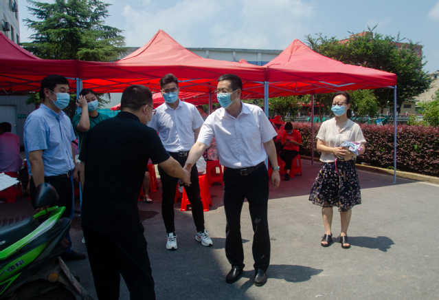 活動期間,劉建中一行在嚴店鄉(xiāng)政府黨委書記周洲、團委書記朱云青以及實踐團隊指導老師楊林的陪同下,對正在協(xié)助衛(wèi)生院進行疫苗接種的隊員們走訪慰問。劉建中一行先是聽取了實踐團隊今天的活動安排及活動成效,并對當?shù)卣闹С直硎靖兄x,劉建中表示,當?shù)卣闹С质俏覀儗嵺`團隊能正常開展活動的保障,作為社會實踐團隊,要將我們的活動做實,為當?shù)鼐用褙暙I自己的一份力量,這才是這次實踐活動的意義所在。接著,劉建中一行詢問了實踐團隊前三天的活動開展情況,了解到該團隊已經(jīng)在敬老院、少年宮等地開展了疫情防控、聊天談心、黨史教育、支教等活動,對多樣化的活動形式表示了肯定,劉建中指出,社會實踐活動形式多元化可以讓學生從多角度了解國情,看到鄉(xiāng)村振興的成果,同時可以提升學生整合知識能力,并將知識應用于實踐,從多方面鍛煉學生的實踐能力。在與當?shù)攸h委書記周洲的交流中,劉建中就大學生的暑期社會實踐活動表示,我們學校要多帶領(lǐng)當代大學生深入基層一線,了解國情,讓生活在“蜜糖罐子”里的他們體驗一下“苦日子”,用腳步丈量世界,教育引導他們更好地為社會作貢獻。最后,劉建中對團隊指導老師及學生負責人做出了要求,他強調(diào),實踐團隊要重視隊員的安全問題,做到“提前預防”“及時報告”“及時治療”,禁止學生晚上出行,將學生安全置于首位;要引導隊員們將實踐活動做到實處,在完成當?shù)卣块T布置的任務的同時,也要開展具有特色的活動;要將自身所學的知識應用于社會實踐,在社會實踐中把握自己、提升自己。