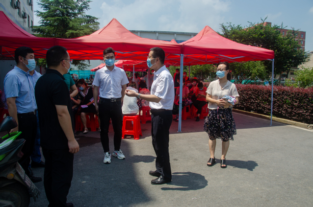 為近一步宣傳疫情防控知識,幫助當?shù)剜l(xiāng)民做好疫苗接種,720日,我院暑期三下鄉(xiāng)社會實踐團隊成員主動前往嚴店鄉(xiāng)衛(wèi)生院,開展協(xié)助衛(wèi)生院進行疫苗接種工作,發(fā)放防疫宣傳冊等志愿服務活動。活動期間,合肥學院校黨委副書記劉建中,校黨委委員、學工部部長朱濤,校團委副書記(主持工作)王玉,校團委副書記李妍妍來我院社會實踐團隊走訪慰問,嚴店鄉(xiāng)政府黨委書記周洲、團委書記朱云青陪同。