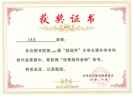 肖青青同志在科研工作方面緊密圍繞專業(yè)需求和發(fā)展,主要從事食品安全與農(nóng)業(yè)環(huán)境污染防治等方面的科研工作。主持完成國家自然科學(xué)基金青年基金項目1項、國家重點研發(fā)計劃子課題1項、安徽省自然科學(xué)基金青年基金項目1項、合肥市科技局對外合作借轉(zhuǎn)補項目、橫向校企合作項目1項、發(fā)表論文20篇(SCI論文5篇、中文論文4篇,其中中科院分區(qū)大類一區(qū)SCI論文2篇、CSCD論文1篇、中文核心期刊論文1篇)。授權(quán)實用新型專利5項、軟著6項、科技論文獲獎1項。