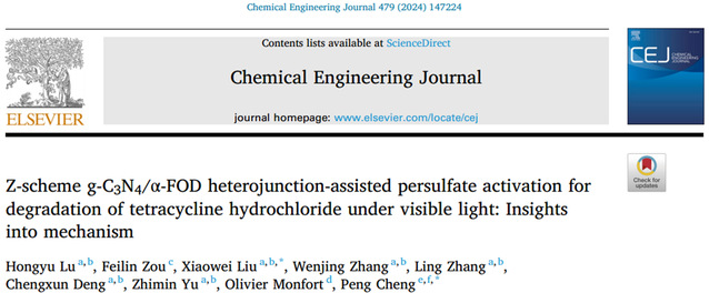 劉曉薇教授團隊:Z-scheme g-C3N4/α-FOD heterojunction-assisted persulfate activation for degradation of tetracycline hydrochloride under visible light: Insights into mechanism
