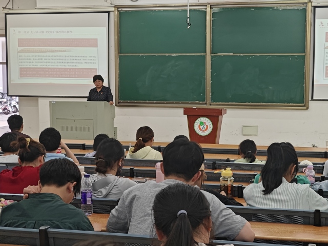 513日中午十二點(diǎn)半,生物食品與環(huán)境學(xué)院在生化樓一階梯教室開展以“深學(xué)細(xì)照篤行,讓黨章銘刻于心”為主題的入黨積極分子第二次培訓(xùn)課程。此次培訓(xùn)班教學(xué)由生物食品與環(huán)境學(xué)院黨委書記李秀娟主講,全體入黨積極分子參加。