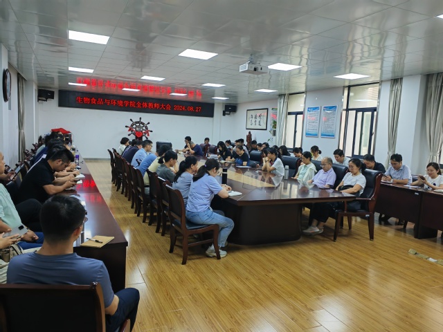 為貫徹落實黨的二十屆三中全會精神,推動學院高質量發展,保障新學期工作有條不紊的開展,8月27日,生物食品與環境學院組織開展了2024年度秋季學期第一次全院教職工大會,學院黨政領導班子及全體教師參會。會議由學院副院長(主持工作)阮班鋒主持。