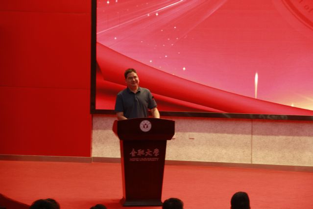 視頻結束,生物食品與環境學院副院長(主持工作)阮班鋒上臺致歡迎辭,并對他們未來大學四年的生活寄予厚望。阮班鋒表示,希望各位學生在今后的學習生活中保持熱情,敢于探索,積極投身于學院建設當中,更好地成長成才。隨后,教師代表、環境工程系儲著定發言,在歡迎新生到來的同時,對全體學生提出了未來四年學業、人生規劃上的要求。老生代表、21級陳驚鴻同學發言,作為大四學姐,她從親身經歷出發提醒同學們,大學四年很短暫也很漫長,一定要做好每一個階段性的規劃。新生代表、24級陳燦燦同學發言,像其他新生一樣,陳燦燦激動得表達自己步入校園的喜悅之情,對未來的大學生活充滿期盼。