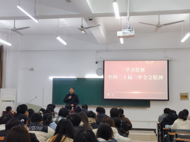 1224日下午,校黨委委員、副校長白義香在37103教室,以“學習貫徹黨的二十屆三中全會精神”為題,為2024級產品設計專業和建筑學專業本科生講授了一堂精彩的思政課,受到了同學們的熱烈歡迎。